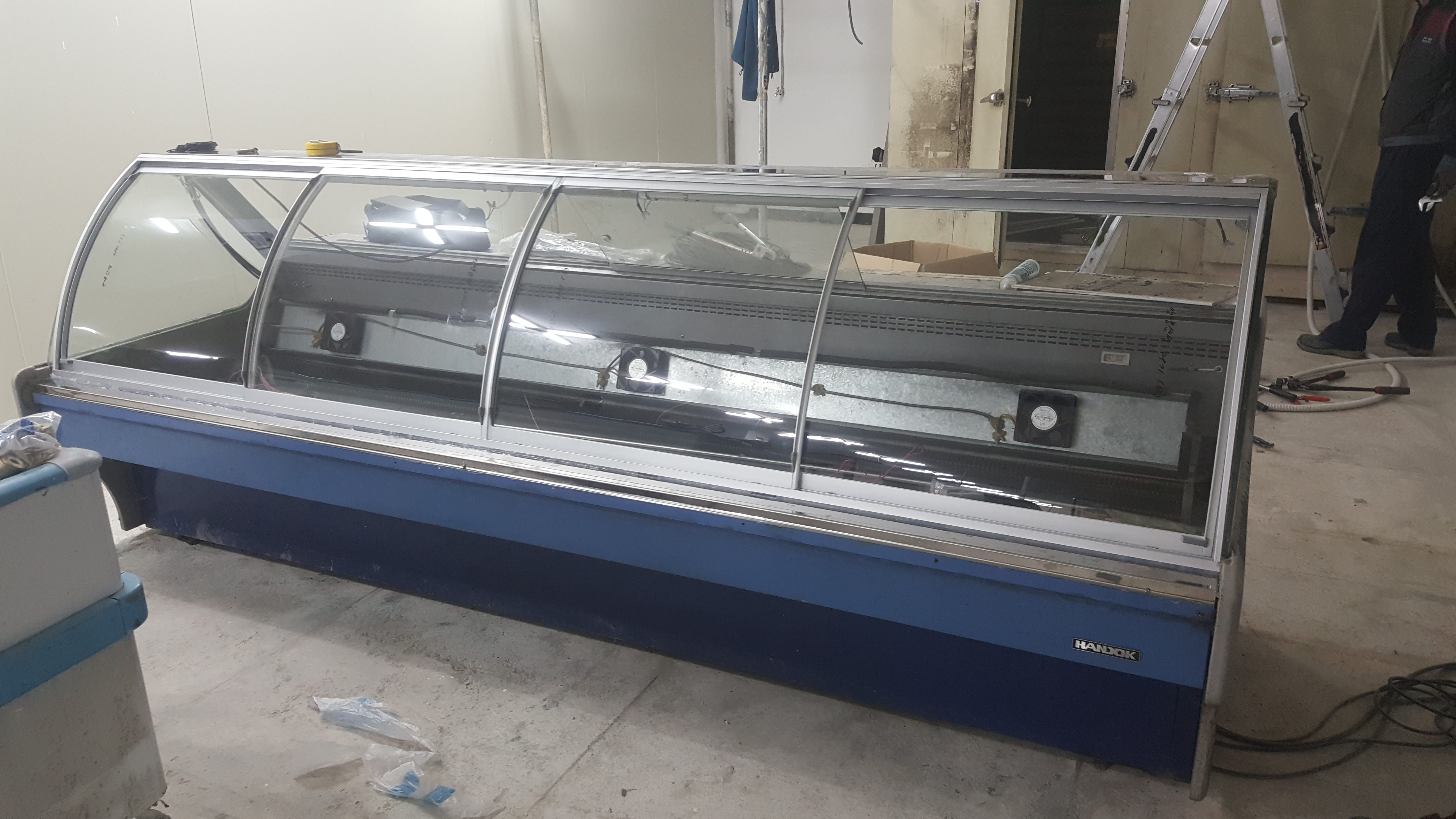 정육점,농협하나로마트,식자재 정육점,정육대면쇼케이스,슬라이딩도어 개조작업,히터추가 장착,제상콘트롤판넬 추가 제작시공,설치전문업체,시공사례